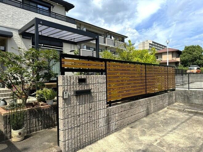 タカショーのショールームをご案内したところ、他社にはないデザインのフェンス、センシアR横パネルコンビを気に入って頂き既設の門柱を一部解体して設置しました。