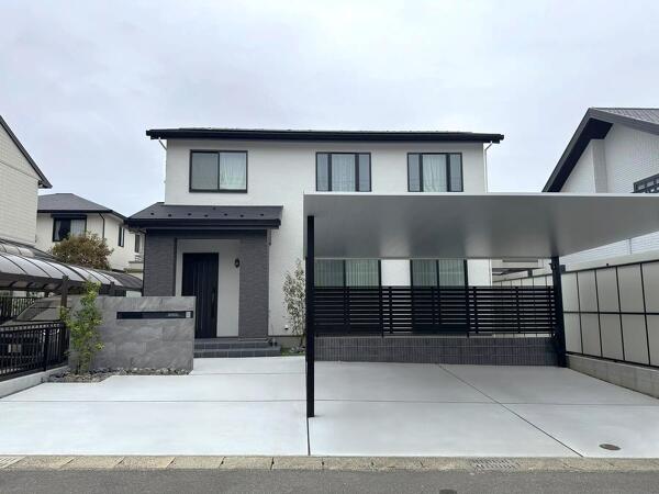 カーポートは後柱が一番後ろにあるため、乗り降りのしやすいプレーンルーフを提案しました。駐車場は広いので、普段使いがしやすいように幅6mのサイズです。