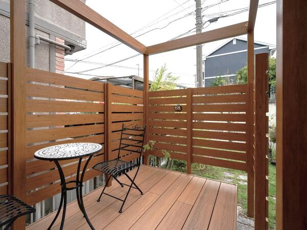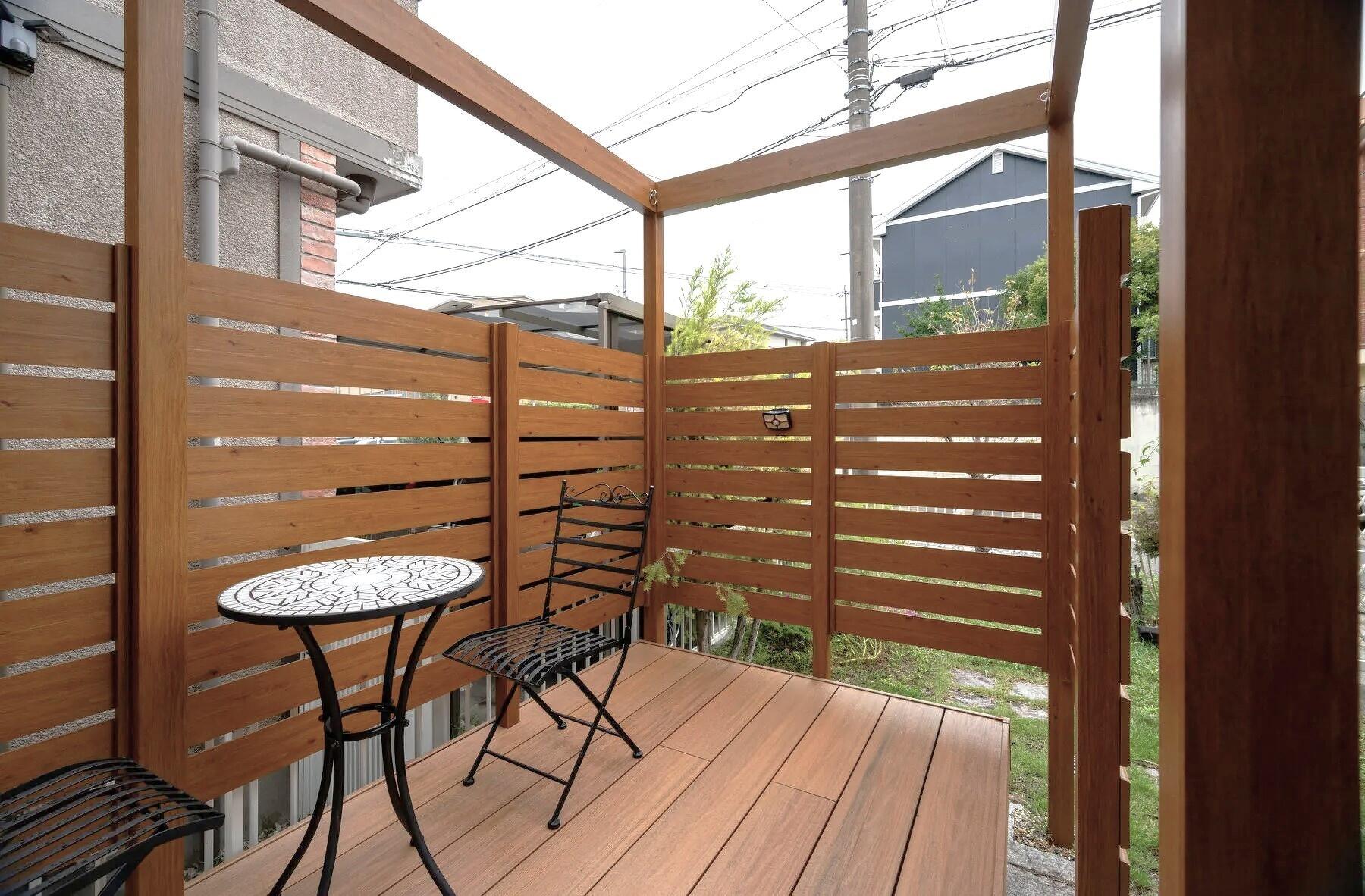 板張りは圧迫感が出にくいように、目隠しとして最低限必要な高さをお客様に確認しつつ決めました