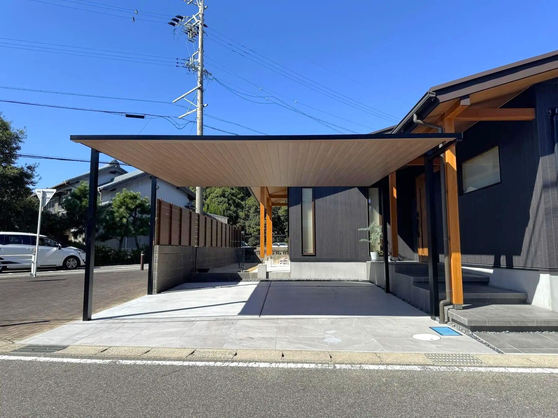 最後に追加でカーポートをつけることになりました。屋根の高さを軒下に合わすことでバランスが良くなりました
