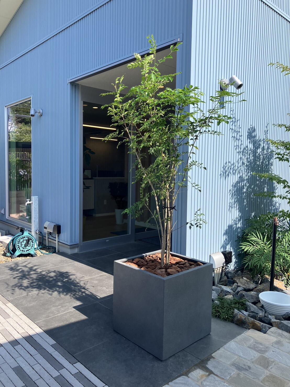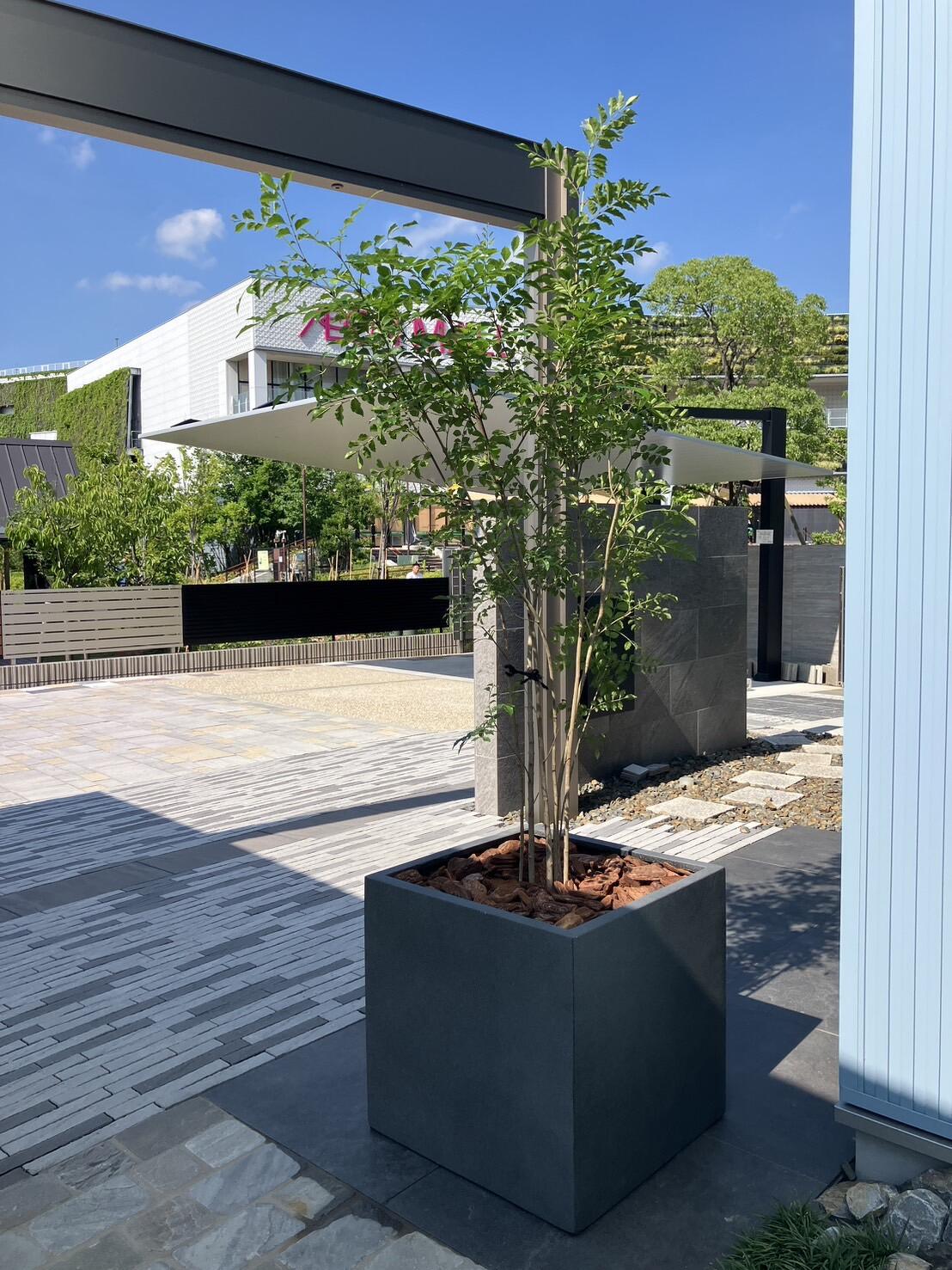 ◆ シマトネリコ 鉢植えしました ◆ 本日、お店の入り口に鉢植えのシマトネリコを設置しました。風に揺れる枝と爽やかな緑に癒される空間になりました。 ただ今、高さ約170㎝。 鉢植えしたこのシマトネリコの成長を、またご報告します!