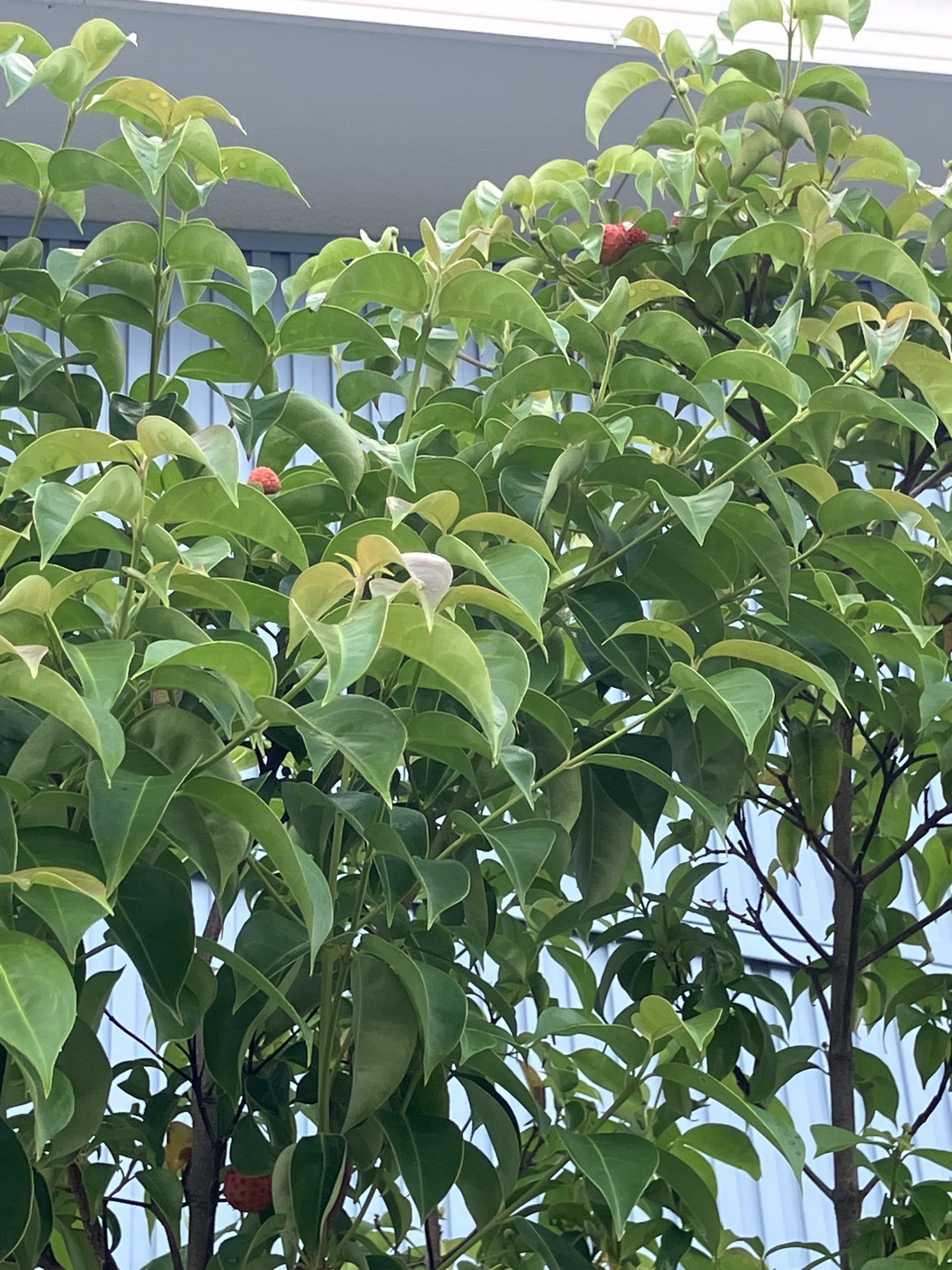 秋の風がもっと冷たくなってきた頃、ヤマボウシの葉も赤く色付き始めます。