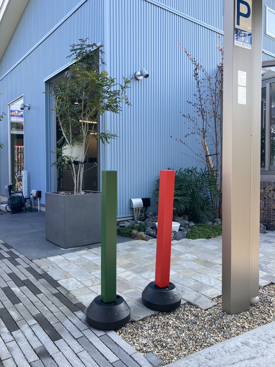 弊社お客様駐車場は カーポートの柱がシャイングレー のため風景に溶け込んでしまい……
